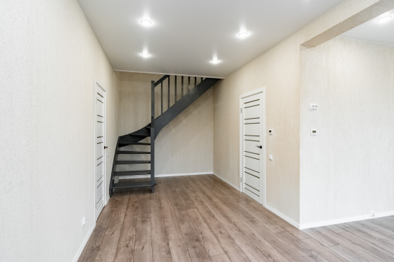 Лестница на второй этаж сделана на заказ.