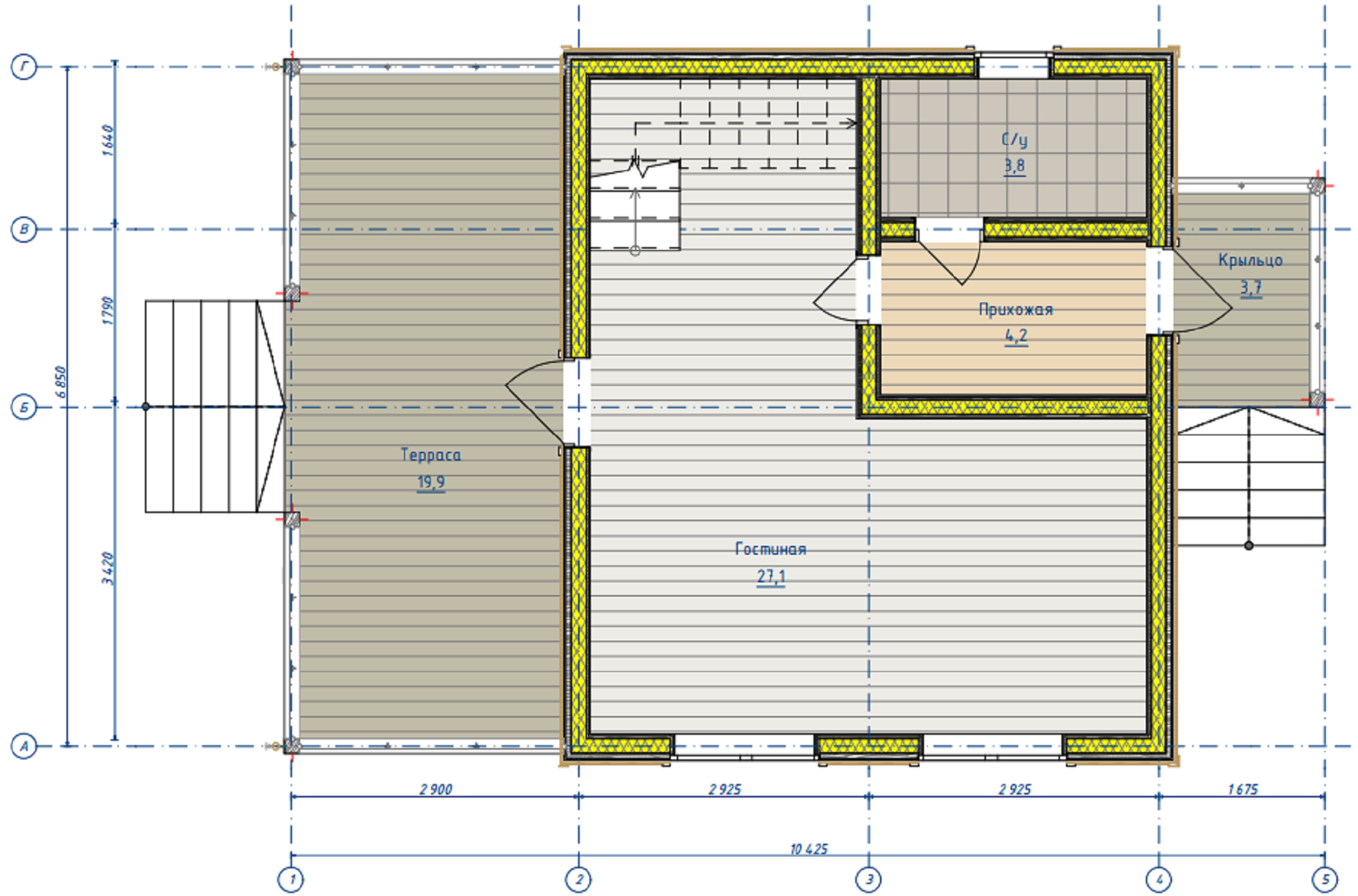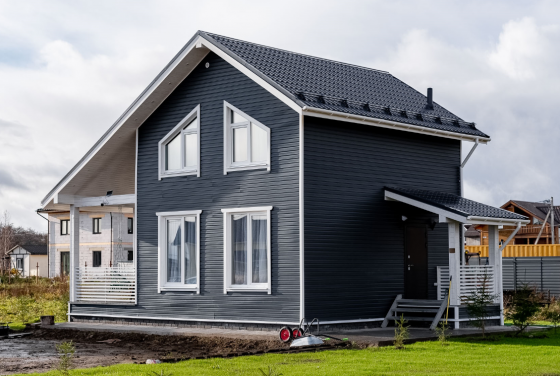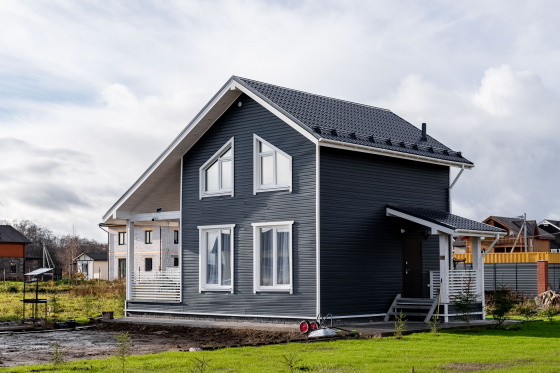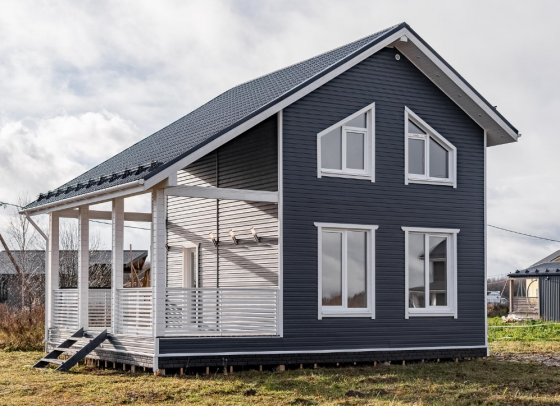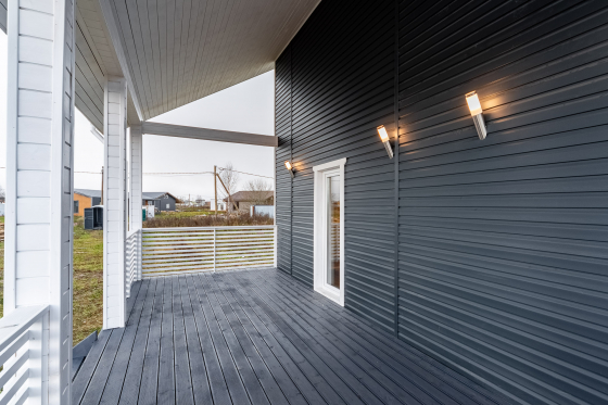 - наружная отделка : сайдинг (имитация бруса, фальц, фиброцемент является дополнительной опцией)
