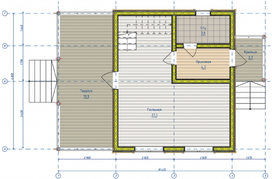 - внутренняя лестница : ель высшего сорта с пропиткой (в случае наличия второго этажа)