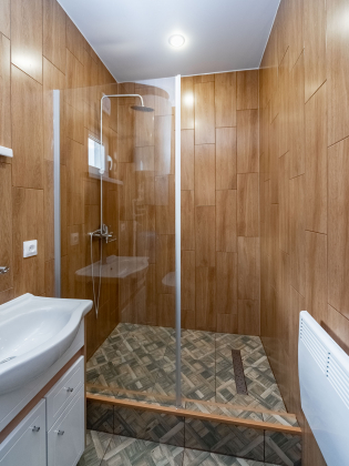 - керамогранит на стенах и полу ( с гидроизоляцией)